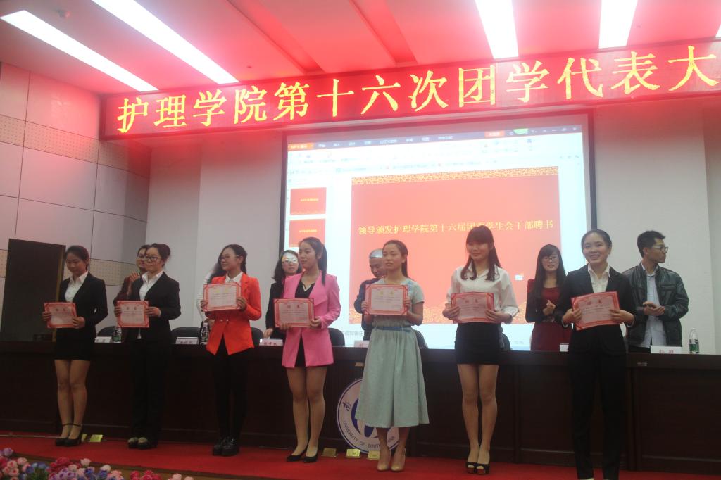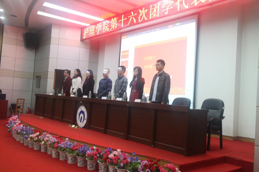 全体起立,奏国歌。随即,护理学院党委副书记余晓秋致开幕词,表达了对新一届团干的祝贺。筹备委员会伍春作团学代表大会筹备工作报告,明确了第十六届团干选举的公正性和明智性。