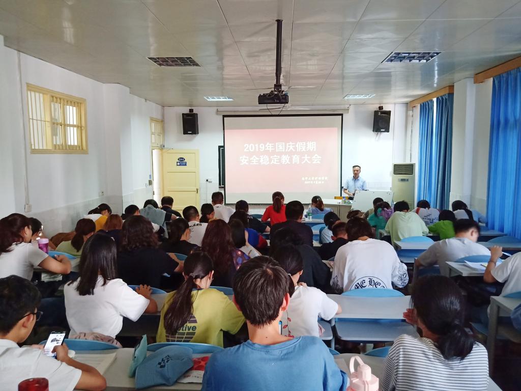 2019年9月26日下午,365英国上市公司于学院二楼多媒体教室召开国庆假期安全稳定教育大会。