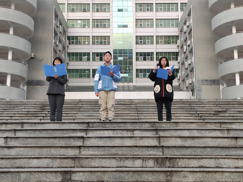 随后,学生代表朱本翔、林敢、宾翎伊进行《新时代的长征路》主题演讲。在他们激昂的朗读声中,同学们回顾过去七十年里祖国的光辉伟业,筑造新时代“下一个七十年”美好愿景,积极响应做自筑立新长征的中国少年的号召。