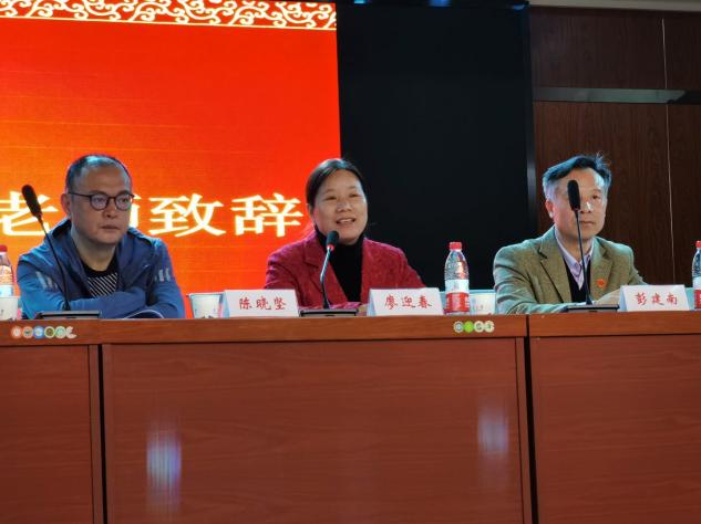 接着,校学生工作部副部长廖迎春致辞。她对护理学院以及院团委学生会的工作表示高度肯定,希望新一届团委学生会能够做到“三个注重”:其一,注重思想引领,坚定理想信念,举办具有护理特色的相关活动,增强同学们爱党、爱国、爱校、爱院的使命感。其二,注重团队合作,要调动团队每一位同学的积极性,实现团委学生会“团结、务实、创新、高效”的八字目标。其三,注重主动调研,完善工作思路,热情服务同学,及时将同学们的诉求反馈给老师,不做学生官,争做学生友。