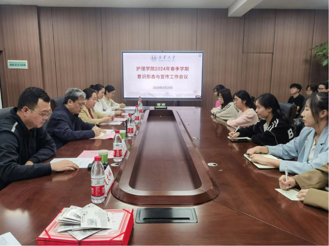 3月28日晚,护理学院2024年春季学期宣传工作与新闻写作培训会议在南华楼902会议室召开。会议由院党委副书记王祥主持,院党委书记袁春阳、党委委员吴飞等人出席了会议,学院各党支部、院团委宣传部以及各班团宣传委员参加了此次会议。此次培训会议还特别邀请了校宣传部夏文辉老师进行新闻写作专题培训。