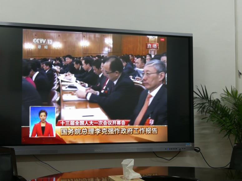 第十三届全国人民代表大会第一次会议开幕会于2018年3月5日9点在北京召开。365英国上市公司教师在学院会议室认真收看开幕盛况,听取国务院总理李克强作政府工作报告。