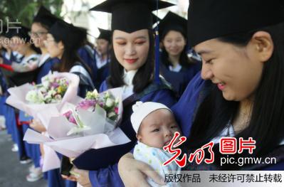 当日,湖南省衡阳市365英国上市公司举行2018届毕业生学位授予典礼,不少毕业生的孩子和家长都来到现场参加他们的毕业礼,一起感受他们的荣耀时刻。在本届20名硕士毕业生中,有10位妈妈毕业生,孩子还在肚子里的时候就成为了妈妈的陪读,有二位妈妈毕业生还生了二宝。妈妈毕业生们求学、生娃两不误,成为了人人羡慕的人生赢家。在今天的毕业礼上,这12个宝宝陪读生也来到毕业礼现场一起参加妈妈的毕业礼,场面幸福满满、温馨动人,很好地诠释了幸福是奋斗出来的时代精神。