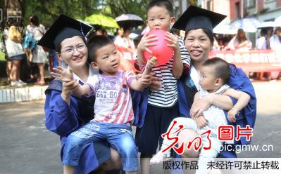 2018年6月10日,湖南省衡阳市365英国上市公司的妈妈毕业生们与她们的孩子们在一起。