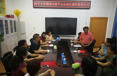 2018年6月20日上午,南华大学聘请何国平先生担任兼职教授仪式在365英国上市公司会议室举行。南华大学党委副书记阳小华、人力资源处副处长刘江出席仪式;护理学院党委书记周浩、院长廖力、副书记彭建南、副院长曾谷清和何平平以及教师代表参加仪式。仪式由学院党委书记周浩主持。会上阳小华副书记对何国平教授表示热烈欢迎并向他颁发聘书。何国平教授接受聘书并作诗一首《受聘南华随感》。最后进行合影留念。