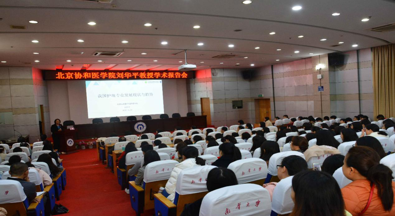 开幕式后,刘华平教授为同学们带来了以“我国护理专业发展与趋势”为主题的学术讲座。她从北京协和医学院护理学院的简介、我国护理专业发展现状、护理专业发展面临的机遇与挑战以及我国护理未来发展趋势4个方面介绍我国护理学专业的过去、现在和将来。刘华平教授还结合自己的护理职业生涯和人生经历使同学们聚焦我国护理事业未来发展的趋势,找到自己未来的方向。听君一席话,胜读十年书,刘教授的精彩讲座将使同学们受益终身。