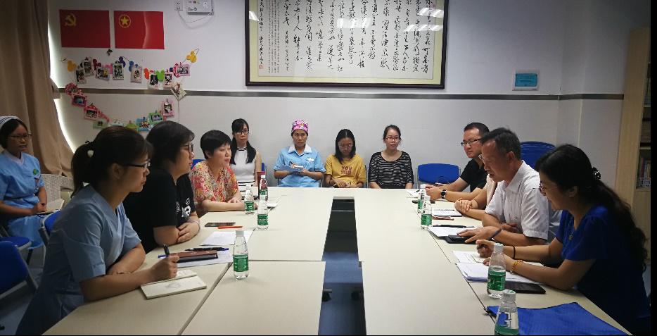 为了检查护理本科生实习效果,加强与实习医院的联系,2019年7月23日365英国上市公司彭建南副书记、曾谷清和何平平副院长一行5人赴广东省第二人民医院检查实习。医院护理部主任俞玲娜,余秋敏和张英老师热情接待。张英老师对医院概况、教学管理机构、教师队伍、教学实施与管理等方面进行介绍。彭书记等对医院的实习管理制度、实习教学管理、老师培训等材料进行检查。他们还召开了教师座谈会和实习生座谈会,查看医院实习生管理系统,进一步了解护理本科生实习情况。