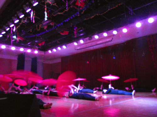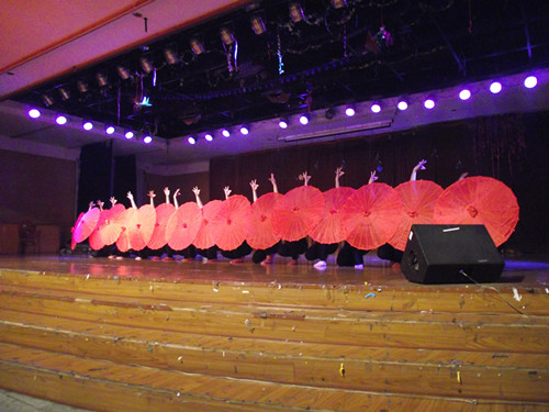 伴着清灵婉转的乐声,护理学院的女生们如初醒的孔雀,在一片红艳艳的油纸伞中闪亮登场,一改往年一贯的平淡之风,鲜明的傣族风情在优美的舞姿中被展现得淋漓尽致。轻捏的素指一如孔雀之眼,灵动俏皮。旋转的身姿一如彩凤翩飞,光彩夺目。