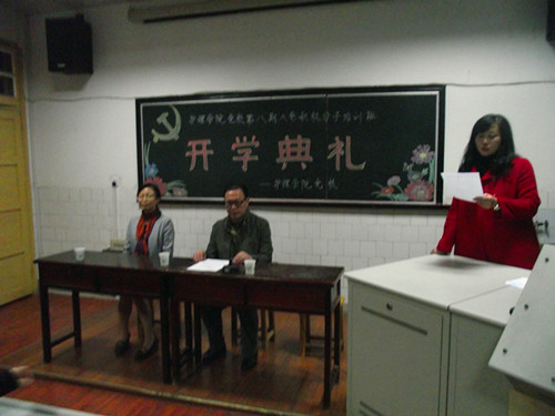 接着,学员代表彭葱发言。本次培训班班主任李翼老师宣读了护理学院第八期入党积极分子培训班课程安排及学习纪律。