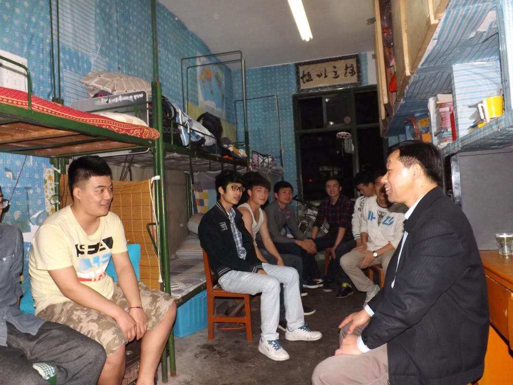 4月9日晚,校纪委书记熊哲琰一行深入护理学院男生宿舍进行了走访和慰问。