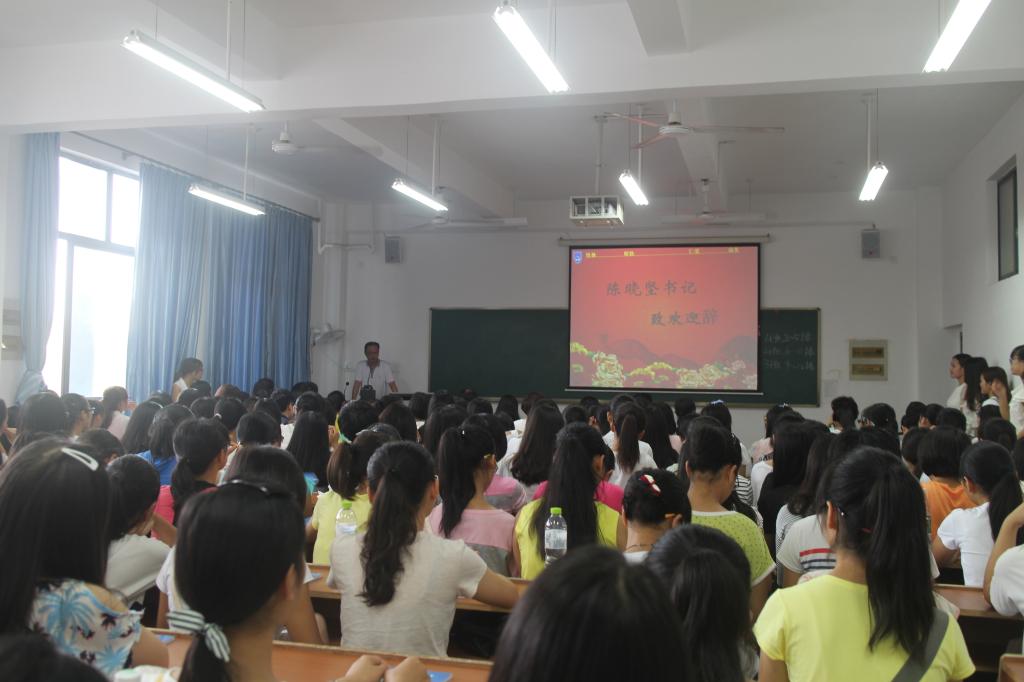 会议开始,由院党委书记陈晓坚致辞。陈书记首先表达了对新生的欢迎以及祝愿,然后根据护理专业向同学们提出了学习以及生活上的建议,鼓励新同学在新的环境中奋发向上。