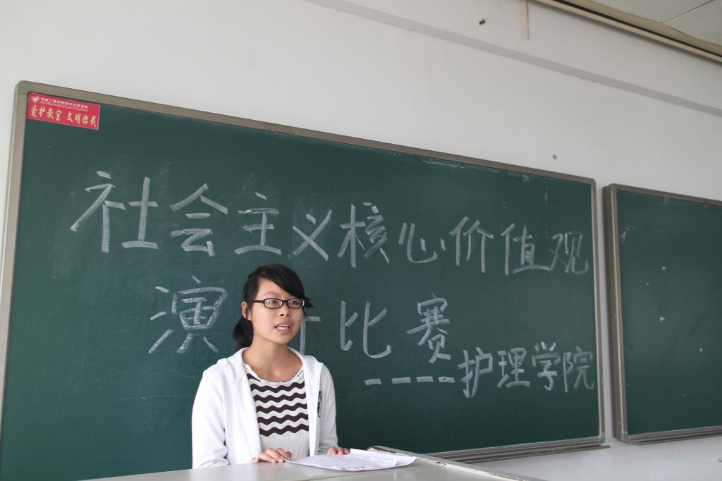 为切实培养和践行社会主义核心价值观,丰富我们的校园生活,10月12日12:30,护理学院在一教209举行了主题为“社会主义核心价值观”的演讲比赛初赛。这次比赛的评委是院分团委副书记彭葱,院学生会副主席张奕,学习部部长邓巧云和副部朱乐陶。曾仕云主持此次比赛。