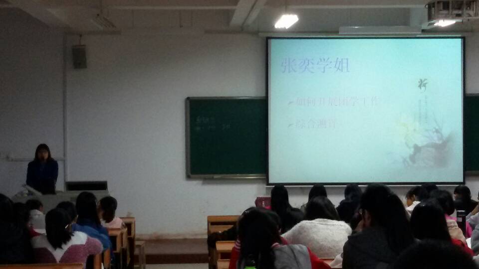交流会伊始,团学会副主席张奕同学详细地给我们介绍了团学会十四个部门的特色活动和职务,讲述了综合测评的真正意义。她强调同学们要在以学习为首要条件下做好一名部门干事,少埋怨。而综测的初衷应是帮助大家品德品行的塑造与提高。学习部部长邓巧云向我们介绍了学院学校的活动,她倡导我们要发展自己的兴趣,多参加活动展现自我,告诫大家“不怕比你优秀的人在,就怕比你优秀的人比你更努力”。党支部组织委员钟业姬就入党相关要求、程序等做了详细的介绍,为有意愿入党的同学提供了很好的建议。科技部部长陈思涓讲述了学好英语的诀窍,无论做何事首先就要树立目标,学习讲求方法,态度决定高度,学习不是外力的逼迫而是源于对自己的鞭策。学院13级第一名彭程同学和第一批拿一等奖学金的体育生邹思梦同学也分享了她们大一的奋斗史,为我们提供了学习上的“锦囊妙计”。