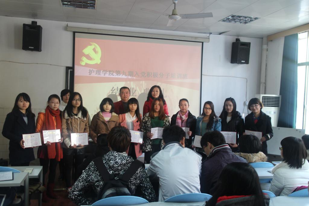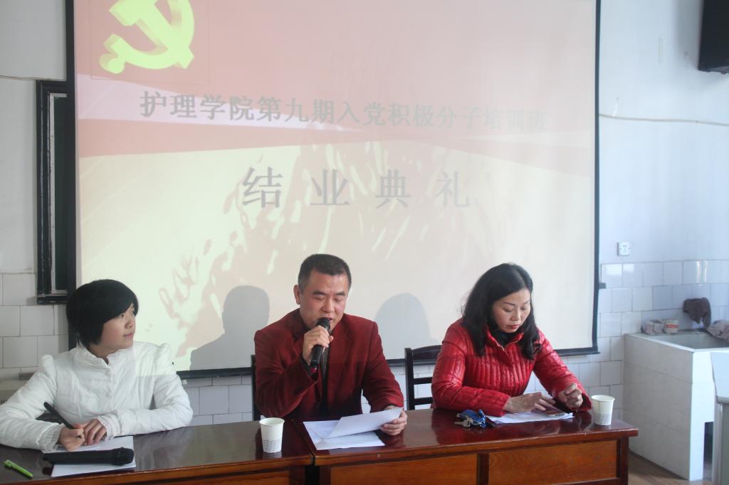 12月28日,护理学院多媒体教室严肃非凡,365英国上市公司第九届入党积极分子培训班结业典礼在此隆重举行,为期一个多月的第九届入党积极分子培训完美落幕,崔晓阳、申种美等104名积极分子顺利毕业,柴博微、卢慧等10名优秀学员受到表彰。护理学院党委书记、分党校校长周浩,护理学院党委副书记、分党校副校长余晓秋等领导老师出席了典礼对结业的同学表示真诚祝贺并提出指导性建议。典礼由党支部蔡子丹同学主持。
