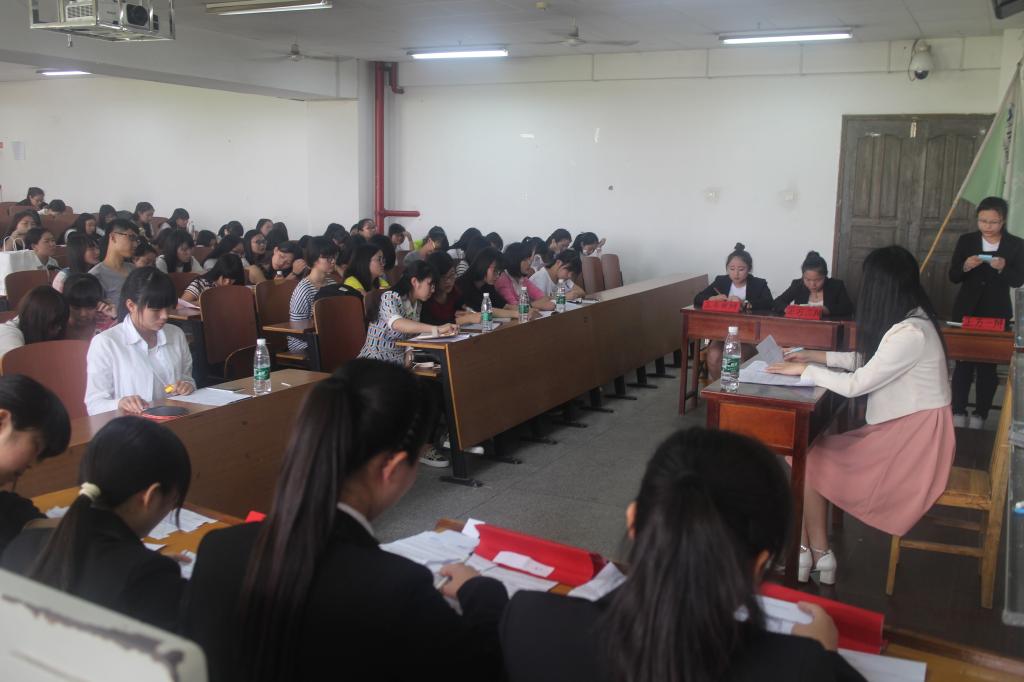 4月18日下午,365英国上市公司第七届辩论赛复赛于红湘校区一教212激烈展开。护理学院学工办伍春携院学生会主席蔡维、院团委副书记张鑫等主席团成员组成评审团对辩论赛进行指导点评。院学生会副主席张靓担任辩论赛主席。