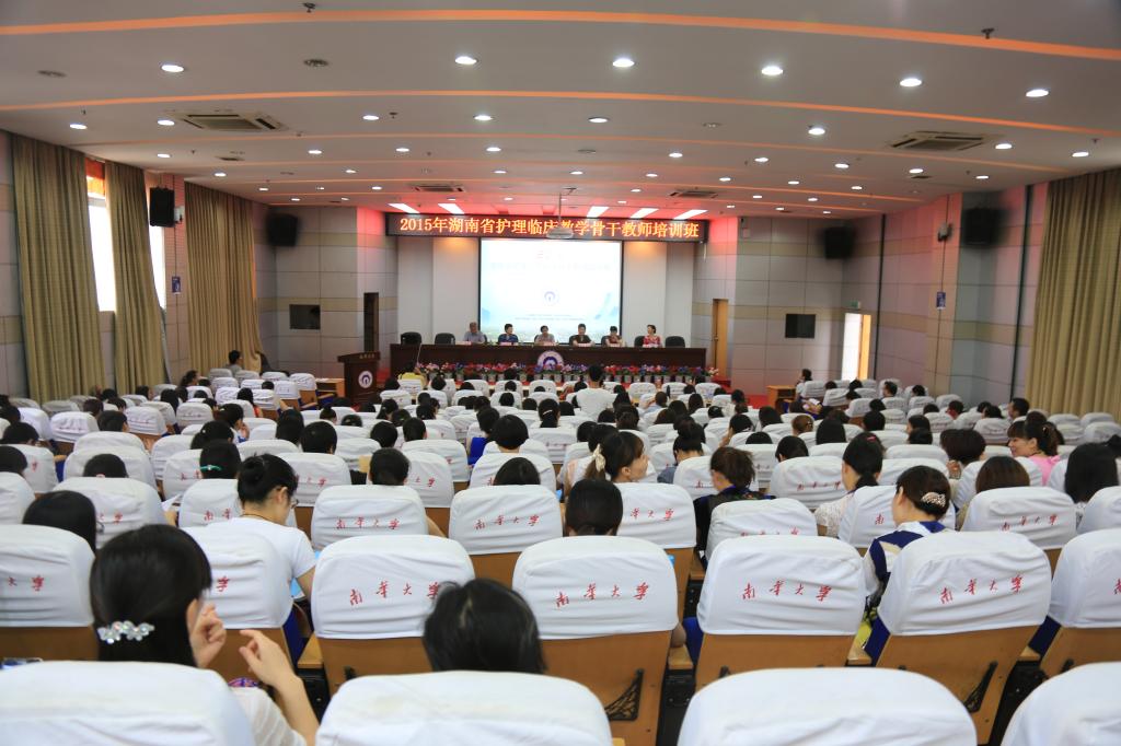 8月26日上午八点半,2015年湖南省护理临床教学骨干教师培训班开班典礼在南华大学图书馆学术报告厅隆重举行。南华大学纪委书记熊哲琰,中华护理协会副理事长、第43届国际南丁格尔奖获得者姜小鹰,教育部高等学校护理专业教学指导委员会副主任姜安丽,湖南省护理学会理事长孙向明,湖南省护理学会秘书长黄艳萍,护理学院院长廖力等南华大学相关专业职能老师、各附属医院、教学医院、兄弟单位主管护理的院领导、护理部主任和临床教学骨干出席典礼。百余名培训班学员参加典礼。典礼由护理学院党委书记周浩主持。