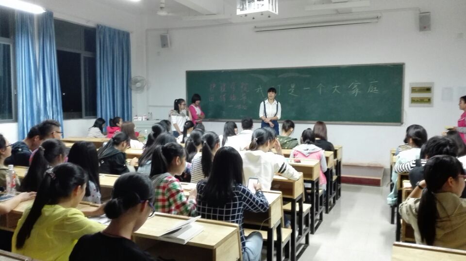 本次活动分两组,一二三班在逸夫楼504开展,由14级朋辈心理员杨婷、李三圆、唐艳林主持。三个班围绕“我们是一个大家庭”的主题,通过幽默风趣的心理测试题和紧张的歌曲接龙、人骑游戏等心理测试游戏初步了解大家的交际能力,加强团体合作意识。最后同学们在纸上写下自我认识和对社交的期待,活动在弥漫着欢声笑语的活跃气氛中结束。
