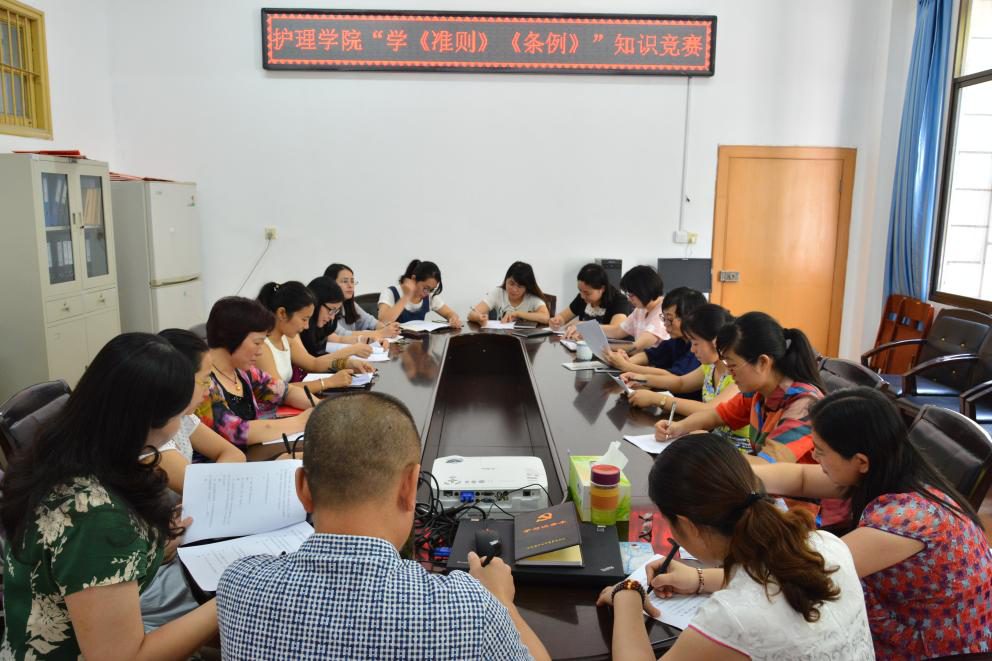 为了掀起宣传学习《中国共产党廉洁自律准则》和《中国共产党纪律处分条例》(简称《准则》和《条例》)的热潮,引导学院全体党员教师树立道德高线、坚守纪律底线,2016年6月14日下午,护理学院党委举行了《学准则、条例》知识竞赛。