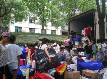 2016年6月30日上午,期末考试结束后,南华大学雨母校区的2015级学生面临着一个难题:搬家。尤其是我院的学生,女生占了总人数的92%,搬家更是一个大难题。根据校学工部的工作安排,我院要在三个半小时内,将学生宿舍区157人的物品搬离至红湘校区,以免影响其他学院搬家,时间紧、任务重。