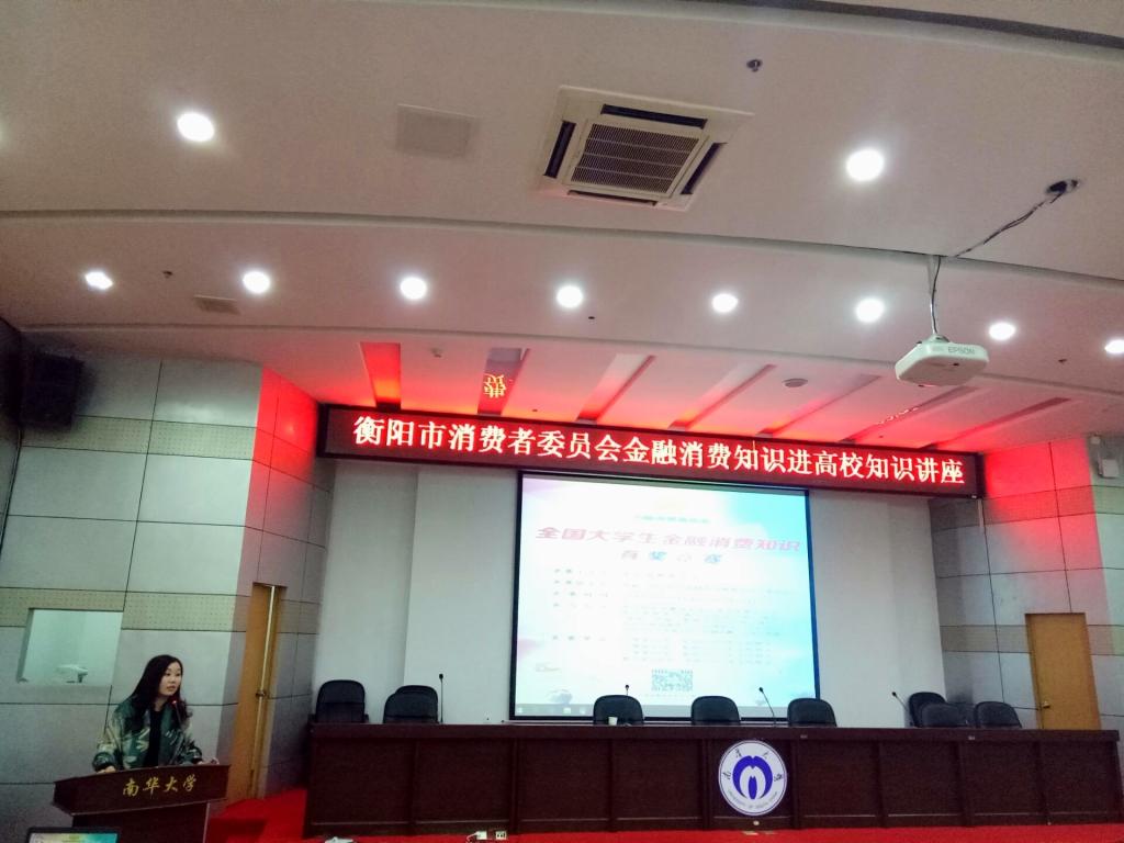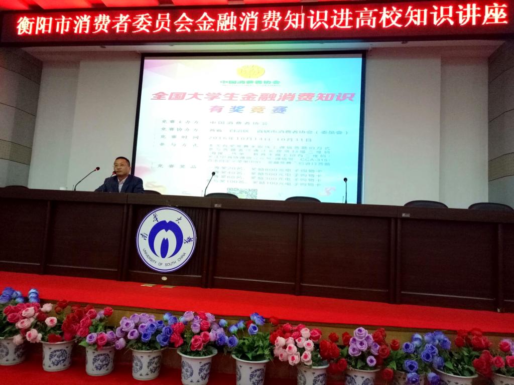 10月28日上午,衡阳市消费者委员会金融消费知识进高校知识讲座在南华大学红湘校区图书馆报告厅举行,衡阳市消费者委员会副秘书长、首都经济贸易大学广告研究所客座研究员唐建雄莅临现场讲授“大学生金融消费知识”专题讲座。护理学院15级、16级共205名学生参加讲座和竞赛,护理学院党委副书记余晓秋、学工室李翼和夏艺萍老师出席讲座,讲座由余晓秋主持。