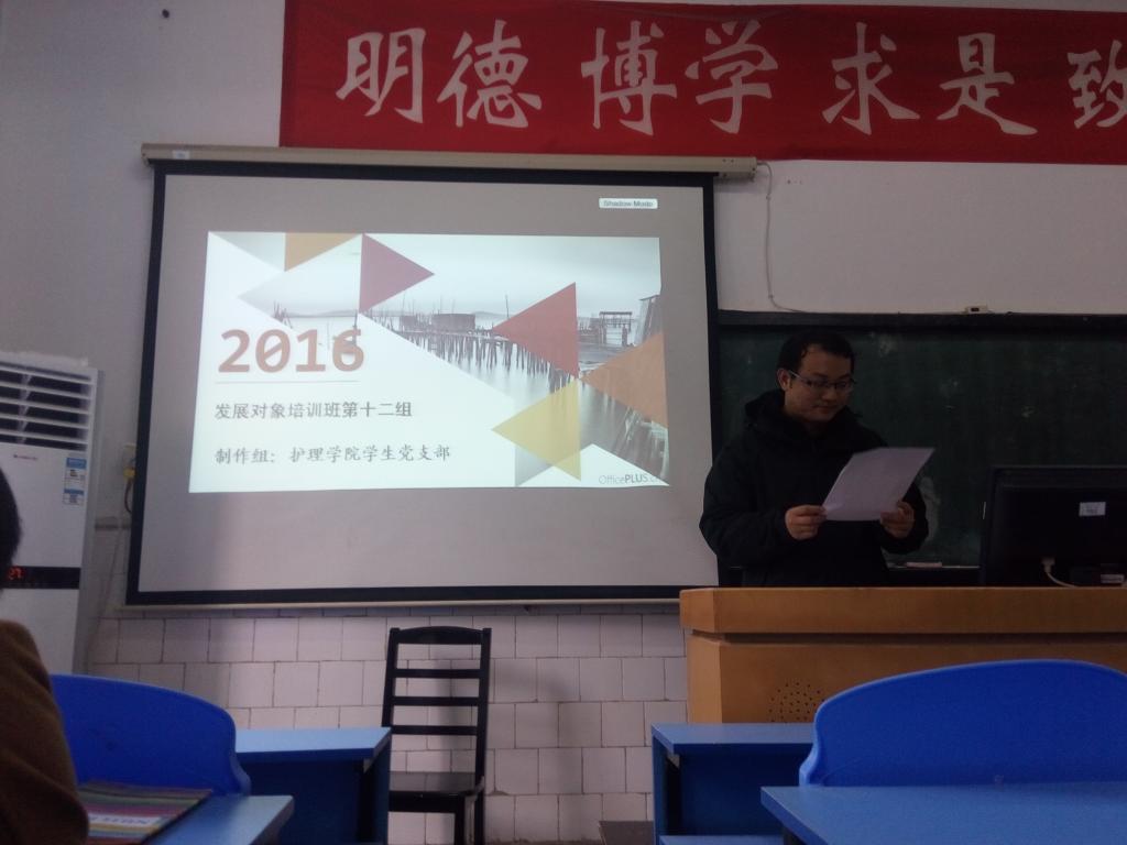 12月10日下午两点半,南华大学2016年发展对象培训班第十二组小组讨论在护理学院研究生教研室顺利召开。来自护理学院、图书馆、国际学院、马克思主义学院、后勤服务中心、南华大学各附属医院、行政党总支、党群保卫处及衡阳市三力公司的55名发展对象参加本次学习讨论。护理学院学生党支部书记李翼出席并主持讨论。