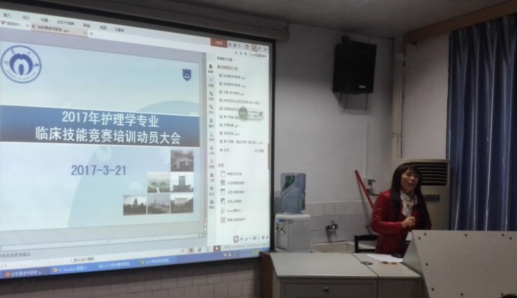 2017年3月21日,护理学院2017年全国护理本科临床技能大赛培训动员大会在学院学术报告厅召开。副院长曾谷清、护理学实验中心教学秘书胡芝华和基础护理教研室主任王蓉出席了本次会议。会议由王蓉主任主持。