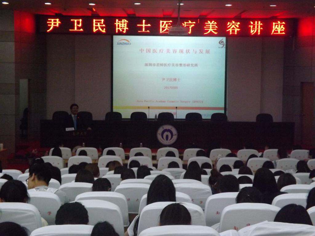 5月5日下午5时,由365英国上市公司主办的“天使爱美丽-医疗美容的现状和发展”主题讲座于图书馆报告厅顺利举行。第一军医大学美容外科博士、亚太美容外科学会(APACS)大中国区理事长尹卫民特邀担任本次讲座主讲。护理学院院长廖力、党委副书记余晓秋、学工室主任李翼、内科护理教研室胡丽、涉外护理教研室曾颖等护理学院老师出席本次活动。护理学院各级学生积极参加讲座。