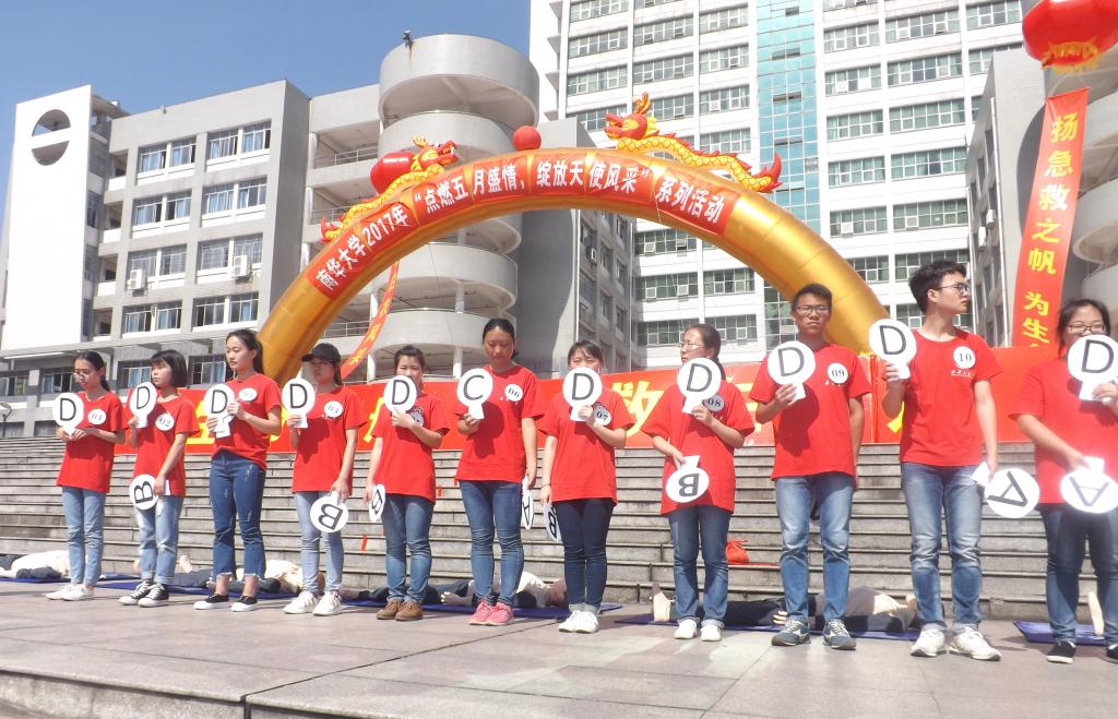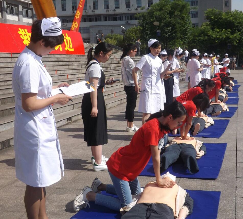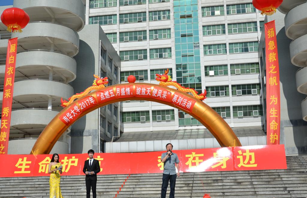 2017年5月14日上午,以“生命护航,救在身边”为主题的南华大学第二届急救技能大赛在南华广场拉开帷幕。本次大赛由南华大学学工部主办,护理学院承办。学校学生工作部部长潘本衡、共青团南华大学委员团委副书记李海洋、护理学院院长廖力、学院党委书记周浩、副书记余晓秋、南华大学附属第一医院护理部主任欧玉兰,附属第二医院护理部主任尹心红和附属南华医院护理部主任胡小萍出席本次大赛。共有来自16个学院的40名参赛选手参加比赛。护理学院全体师生和其他学院师生代表参加活动。