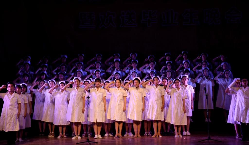 由护理学院2017届毕业生表演的大合唱《中国护士之歌》具有鲜明的护理特色。当白衣天使们头戴燕尾帽,身着护士服,柔情唱响“中国护士,大爱无疆,用奉献浇灌生命,让青春永远绽放”时,现场所有观众不禁动容。来自护理学院各个班级的同学施展十八般武艺,带来的节目多种多样,精彩纷呈。相声《世界那么大》、小品《闺密》让观众席中爆发阵阵欢笑,展现出白衣天使幽默诙谐,能说会道的另一面。歌曲串烧、现代摇滚、民族乐,一展她们美妙婉转的歌喉;现代舞、古典舞、爵士舞、民族舞,尽显她们优美绚丽的身姿。现场充分利用了新媒体技术与现场观众进行互动。