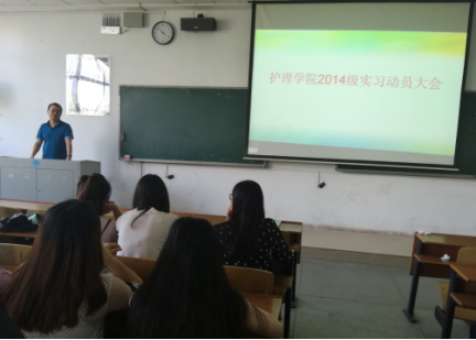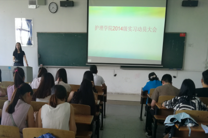 2017年5月27日下午3时,护理学院于一教111教室召开2014级实习动员大会。护理学院党委副书记余晓秋,团委书记夏艺萍,学工室主任李翼、外科教研室吴飞出席大会,14级全体学生参加大会。会议由李翼老师主持。
