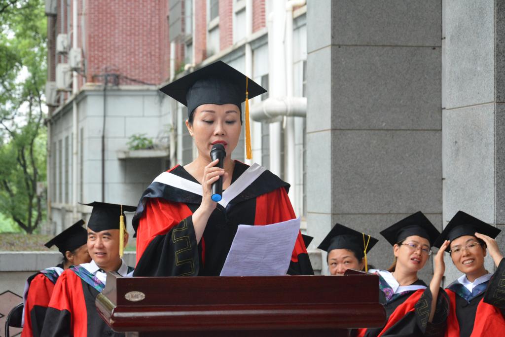 随后,廖力院长为196名毕业生拨流苏,颁发学位证书;周浩书记为她们颁发院徽,并鼓励他们在未来的工作中脚踏实地,再接再厉。教师代表、硕士生导师何平平副教授讲话,她对毕业生们提出五点希望:一是志存高远慕先贤;二是坚持不懈绘人生;三是不断学习攒力量;四是常怀感恩结善缘;五是不忘初心得始终。学生代表、校十佳优秀毕业生王晓芬发言,她代表毕业生们感恩学院老师们的辛勤教导,感谢学弟学妹们的支持和帮助,同时表达了即将离开母校的不舍以及对学院、老师和同学们的美好祝愿。典礼最后,全体毕业生和领导老师们拍合照留念。