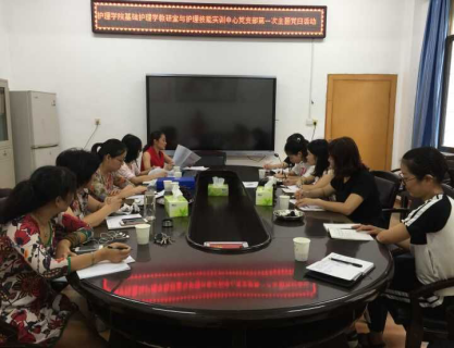 2017年9月12日上午,护理学院基础护理学教研室与护理技能实训中心党支部召开了第一次主题党日活动,会议围绕学习习近平同志在全国高校思想政治工作会议上的讲话精神、《中共南华大学委员会贯彻落实党委意识形态工作责任制实施细则》、廖俊波同志事迹等三个方面展开。党支部全体教师党员及研究生党员参与本次会议。护理学实验中心主任蒋穗斌列席会议。党支部书记王蓉主持会议。