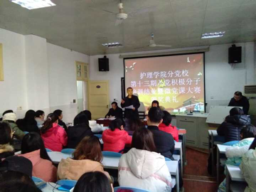 2018年1月9日下午 ,护理学院分党校第十三期入党积极分子暨微党课大赛颁奖典礼于护理学院院办多媒体教室顺利举行。护理学院党委书记周浩、副书记彭建南、副院长曾谷清出席会议,全体师生党员及本期培训班学员参加此次典礼。典礼由学工办主任李翼主持。