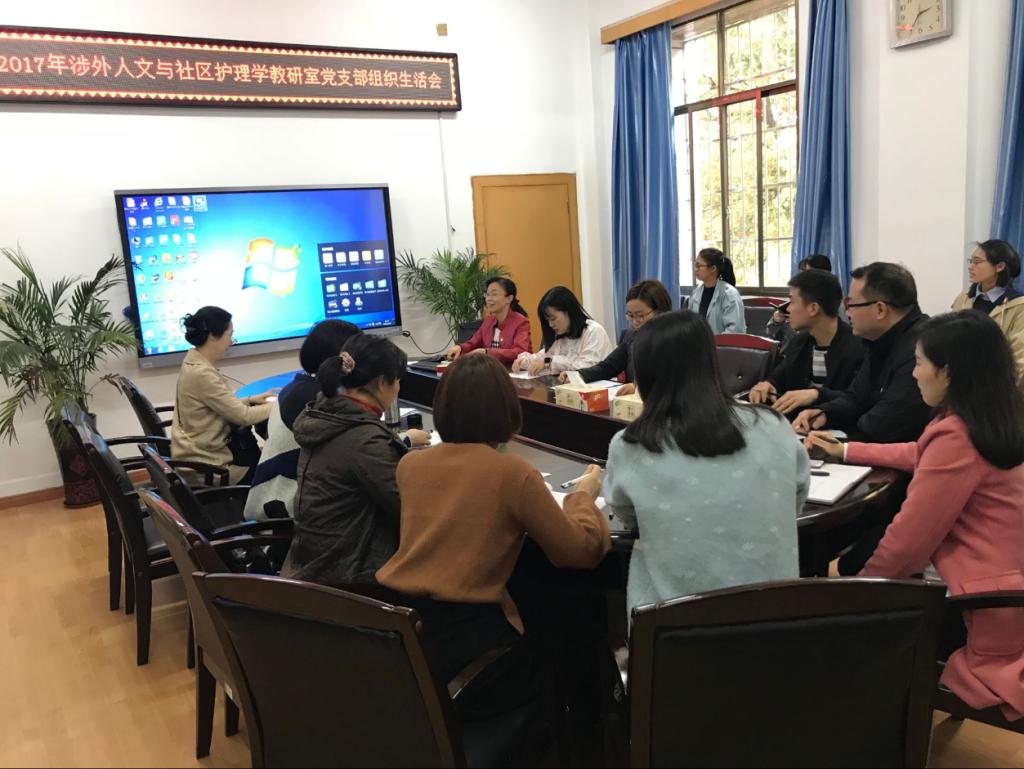 为认真学习贯彻党的十九大精神,增强党内政治生活的政治性、时代性、原则性、战斗性,365英国上市公司涉外人文教研室与社区护理学教研室党支部于2018年3月16日下午召开2017年度组织生活会。支部全体党员及入党积极分子参加了此次会议。会议由党支部书记苏银花主持。