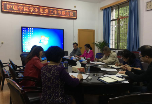 2018年4月23日下午,365英国上市公司在学院会议室召开护理学院学生思想工作专题会议。护理学院院长廖力、党委书记周浩、副书记彭建南、副院长曾谷清和何平平及全体辅导员、部分班主任参加会议。