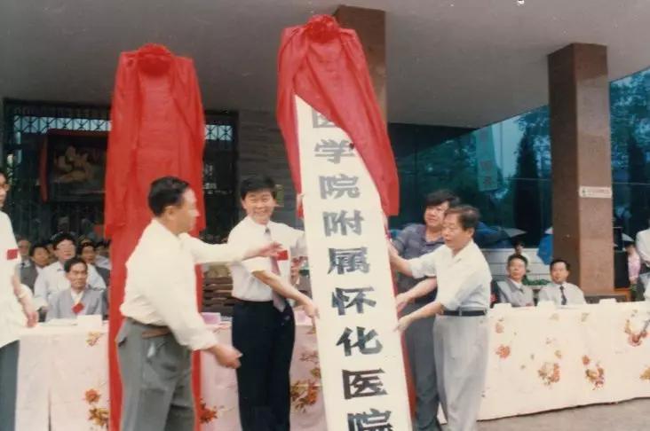 1997.5.28衡阳医学院时任院长杨永宗(左二)、副院长文格波(右二)、院长助理梁大新(左一)与附属怀化医院时任院长毕维德(右一)共同挂牌