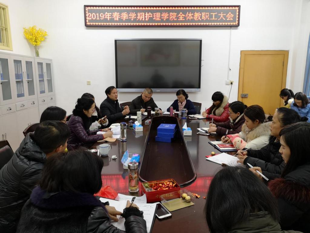 学院党委副书记彭建南对新学期的学生工作作了详细地安排和部署,强调要做好学生的思想教育工作,做好风险防范,防止“黑天鹅”事件的发生。何平平副院长从国家虚拟仿真项目、教学成果奖申报、护理本科临床技能竞赛和国际交流等方面布置了新学期的教学工作。曾谷清副院长就国自科、国社科申报情况作了简单介绍;她指出今年课题申报数量有明显增加,鼓励老师们提前做好湖南省教育厅、科技厅课题的申报准备工作。党委书记周浩对党建工作提出要求,希望全体党员教师积极参与“五化”党支部建设,同时还鼓励老师们积极申报科研项目,为学院增光添彩。最后,廖力院长对学期工作做出全面部署,要求全院上下紧紧围绕“学科、标准、发展、服务”来推进新学期工作,做到“学生工作三落实、教学工作三到位、科研工作三尽早、行政工作三保障”。