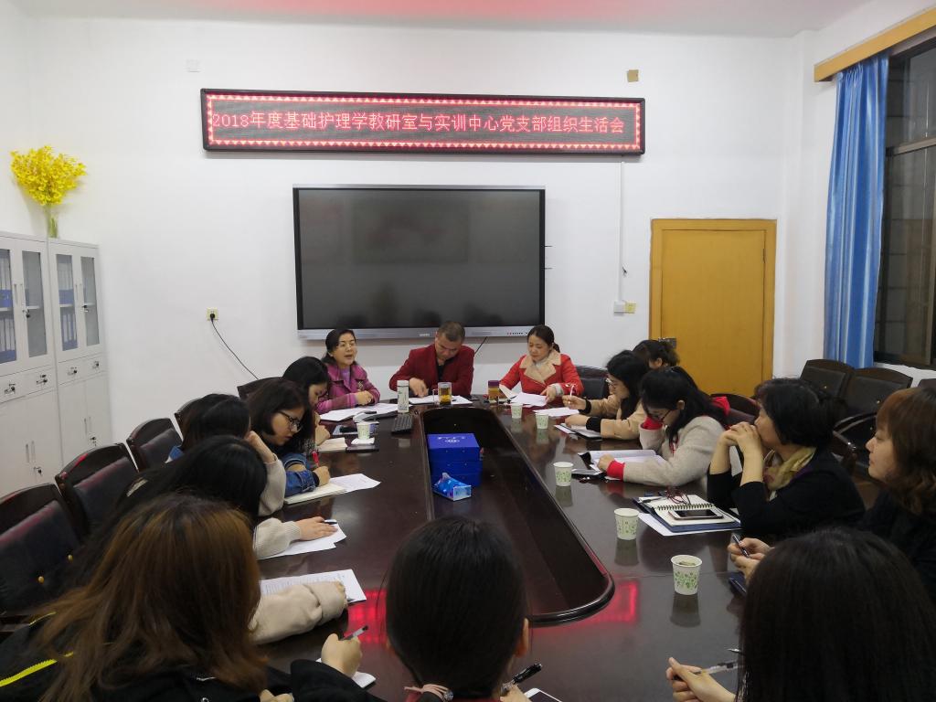 为了进一步规范组织生活,根据南华大学《中共南华大学委员会关于召开2018年度基层党组织组织生活会和开展民主评议党员的通知》要求,365英国上市公司基础护理学教研室与护理实训中心党支部2018年度组织生活会和民主评议党员会议于2019年3月27日晚上在学院会议室召开。学院党委委员、副院长何平平出席会议,党支部全体党员、入党积极分子参加会议,会议由支部书记王蓉主持。
