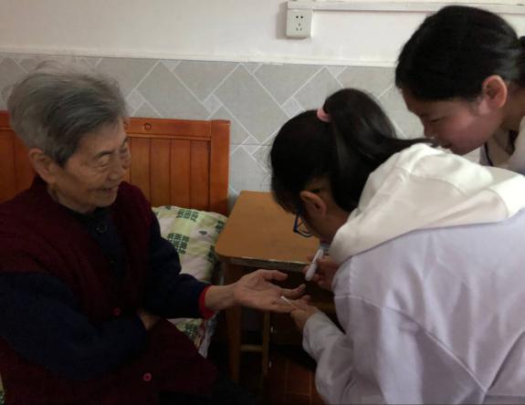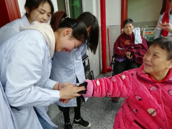 师生们分成三组:第1组负责与养老院老人交流谈心、疏导情绪,满足老人的心理需求和情感需求;第2组负责给老人测量血压、血糖,并向老人进行相关知识的健康宣教,既让老人熟悉自己的血压、血糖情况,又能通过健康知识宣教提高对自身疾病的认识;第3组负责检查卧床老人的压疮情况,向护工讲解压疮的原因、好发部位以及预防和护理措施等健康知识。活动结束后,养老院的老人、护工及养老院负责人向师生们表达了感激之情。