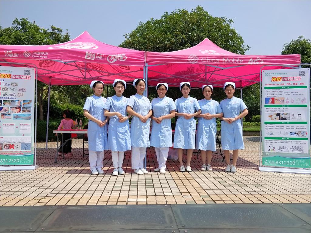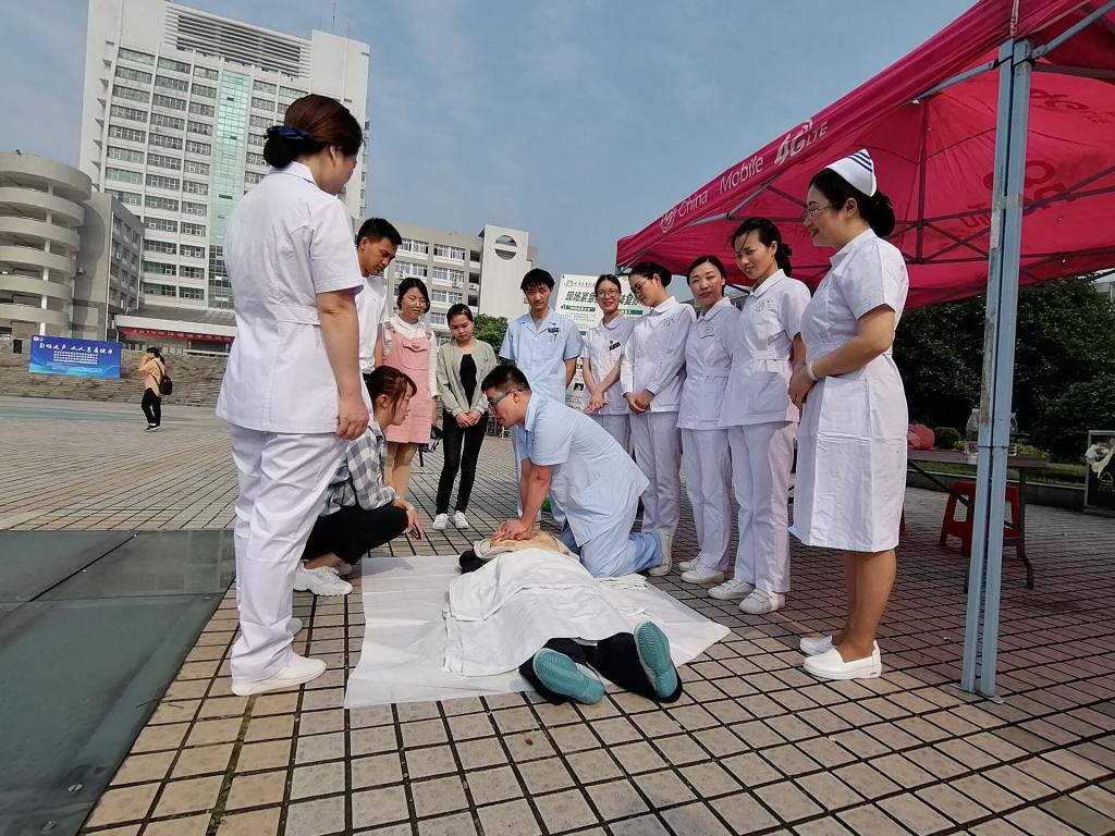 宣教的护士们在广场上认真地讲解各种急救方法和健康宣教:海姆立克急救法能帮助缓解急性呼吸道异物堵塞;心肺复苏能在紧急情况下挽救生命;毒蛇咬伤和日常外伤的处理方法能在紧急时快速阻止伤口的恶化;慢性病的预防知识能降低疾病发生的风险等。护士们亲身示范,让大家理解并掌握这些急救技能,并鼓励师生们和居民们尝试与体验。宣教内容丰富,形式多种多样,具有很高的实用性,吸引了众多学子与居民的驻足观看。