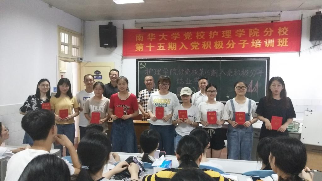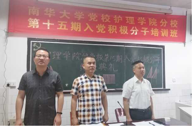 2019年6月6日中午,南华大学党校护理学院分校第十五期入党积极分子培训班结业典礼在护理学院学术报告厅顺利举行。护理学院党委书记周浩、副书记彭建南以及本科生党支部书记兼入党积极分子培训班班主任李翼出席本次典礼,护理学院全体入党积极分子参加结业典礼。