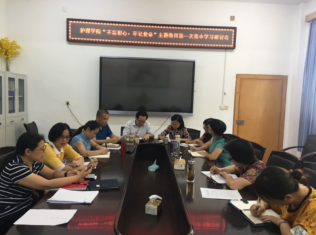 2019年9月23日下午,365英国上市公司党委理论学习中心组围绕“明初心、守初心,坚定理想信念”这一主题,开展“不忘初心、牢记使命”主题教育第一次集中学习研讨。南华大学机关党委书记、“不忘初心,牢记使命”主题教育指导联络组第一组组长简世德、护理学院院长廖力、学院党委书记周浩、副书记彭建南、副院长曾谷清和何平平出席,学院党委委员及各党支部书记参加会议,会议由周浩书记主持。