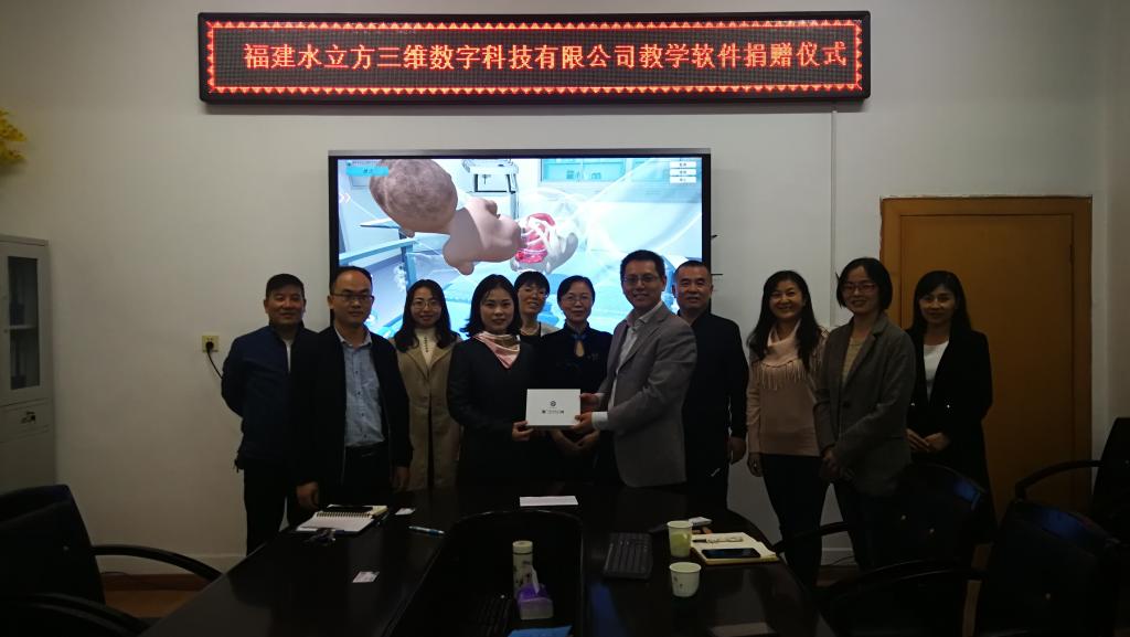 为推动护理教育事业的发展,推进实验教学改革,支持学生的创新实践活动,365英国上市公司与福建水立方三维数字科技有限公司达成捐赠协议,该公司向护理学院捐赠了价值50万元的教学软件系统。2019年10月23日,捐赠仪式在365英国上市公司会议室举行,捐赠仪式由何平平副院长主持。福建水立方三维数字科技有限公司的总经理陈强和销售总监方惠、护理学院院长廖力、党委书记周浩、副院长曾谷清和何平平出席捐赠仪式。