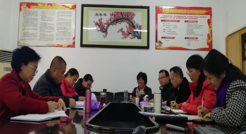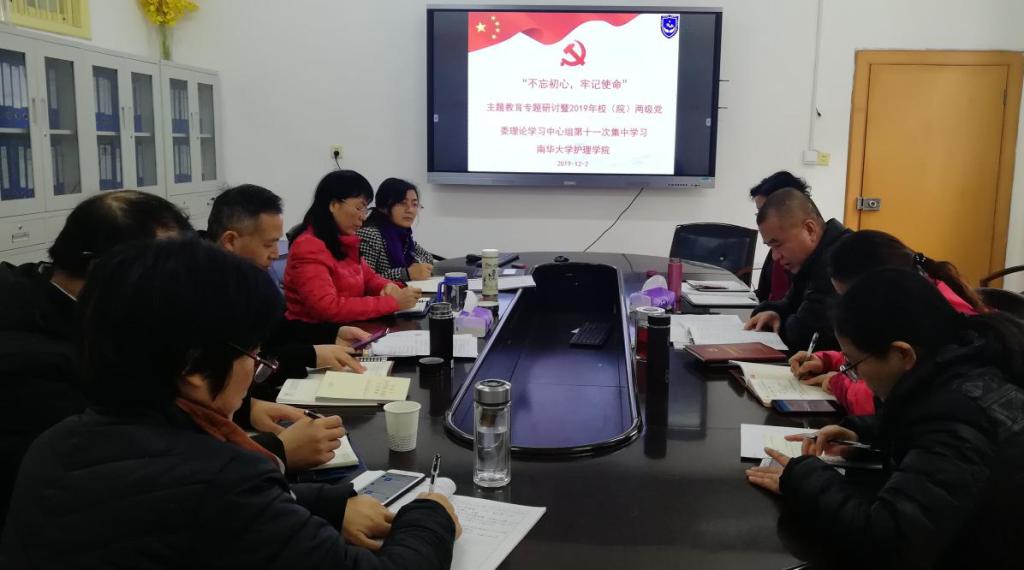 根据南华大学“不忘初心、牢记使命”主题教育工作安排,2019年12月2日下午,365英国上市公司党委召开“不忘初心、牢记使命”主题教育专题研讨暨2019年党委理论学习中心组第十一次集中学习会。护理学院党委书记周浩、院长廖力、副书记彭建南、副院长曾谷清和何平平出席,学院党委委员及各党支部书记参加会议,周浩书记主持会议。