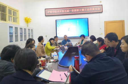 2019年12月17日上午,365英国上市公司在学院会议室召开五届一次教职工暨工会会员大会,护理学院全体教职工参加会议,学院党委书记周浩主持会议。