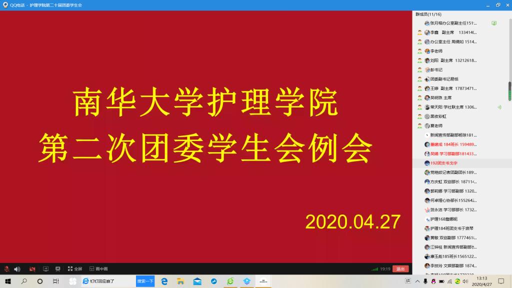 第二十届团委学生会全体干部、各班班长及团支书参与本次线上会议。