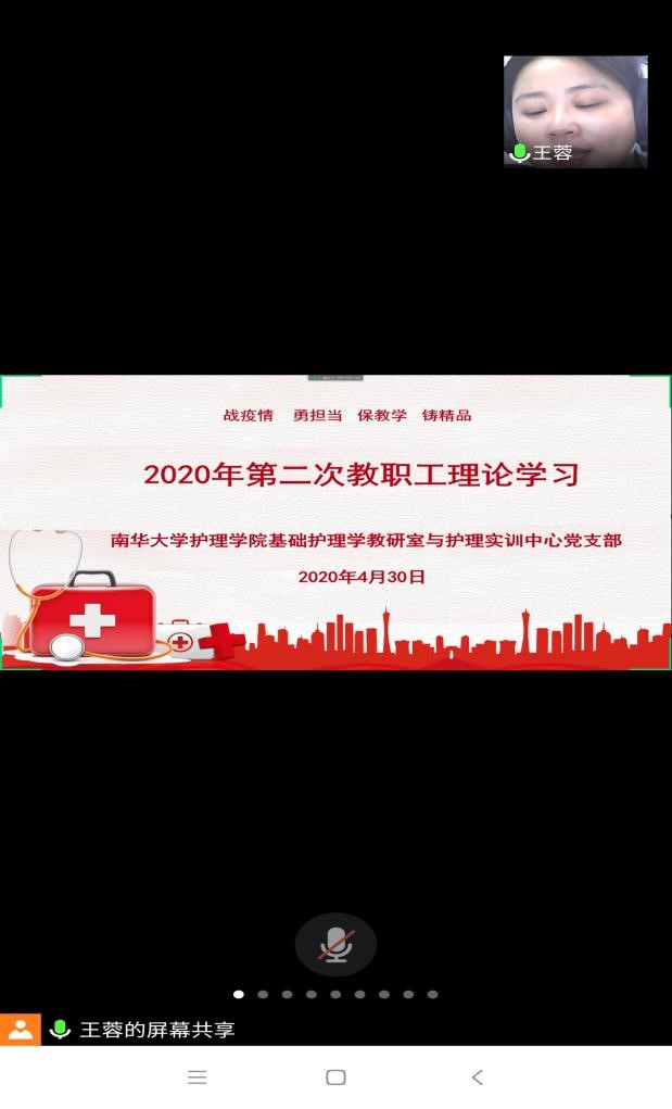 根据《关于开展南华大学2020年第二次教职工理论学习的通知》的精神,护理学院基础护理学教研室与护理技能实训中心党支部于2020年4月30日下午通过腾讯会议开展2020年第二次教职工理论学习。支部全体教师参加此次会议,会议由支部书记王蓉主持。