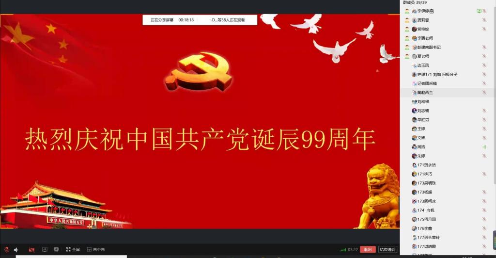 2020年7月1日下午,南华大学护理本科生党支部通过QQ线上视频的方式召开“七·一”学习大会。会议由本科生党支部书记李翼主持,学院党委书记周浩、副书记彭建南、组织员刘和福、支部副书记夏艺萍、支部全体党员、预备党员和发展对象参加本次大会。