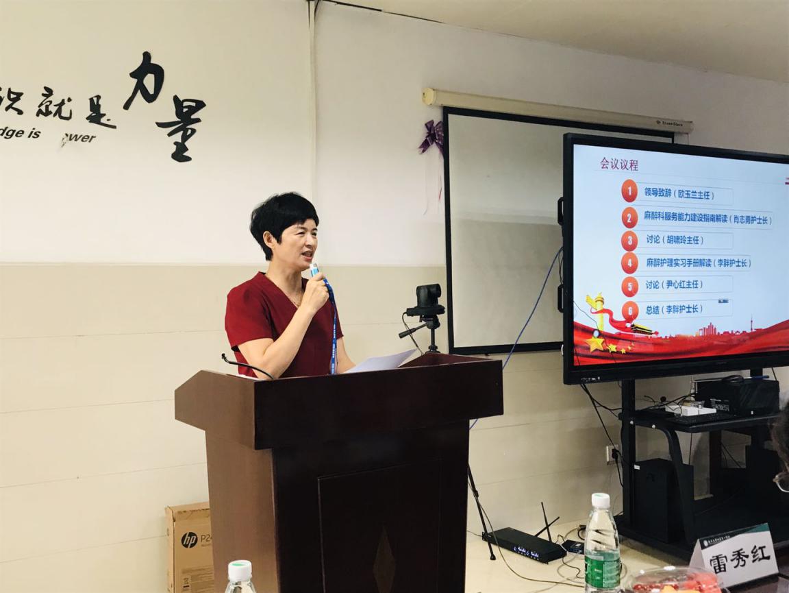 肖志勇护士长就《麻醉科服务能力建设指南》进行深刻解读,详细介绍了麻醉科医疗领域以及质量标准,并鼓励大家积极思考、提出问题,共同参与麻醉科室的建设。