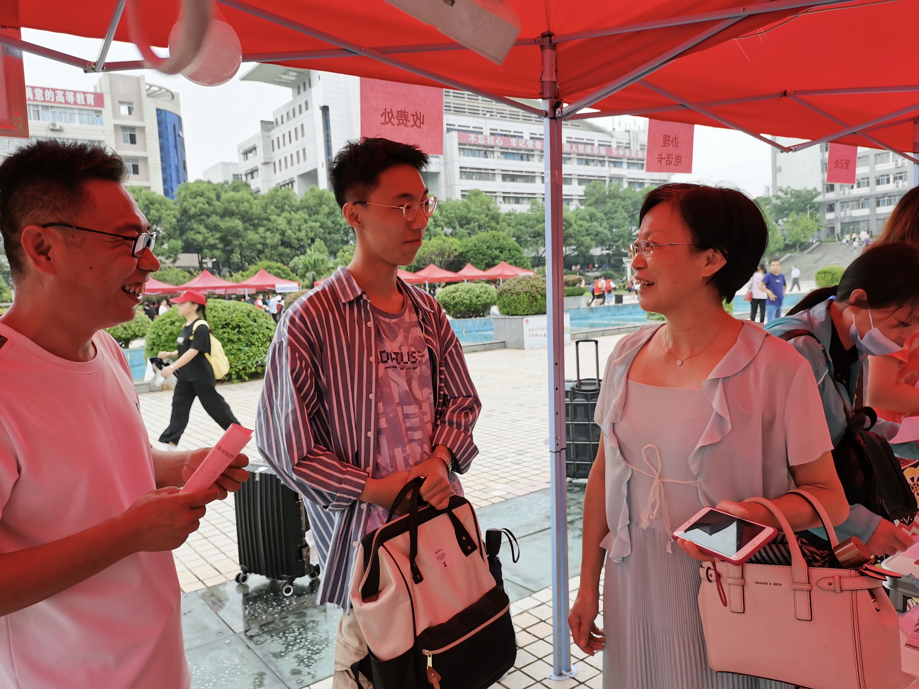 12日上午,护理学院院长廖力、党委书记周浩、副书记彭建南及各班班主任、辅导员老师亲临迎新现场,慰问新生、家长和迎新工作人员,并详细了解新生报到情况。